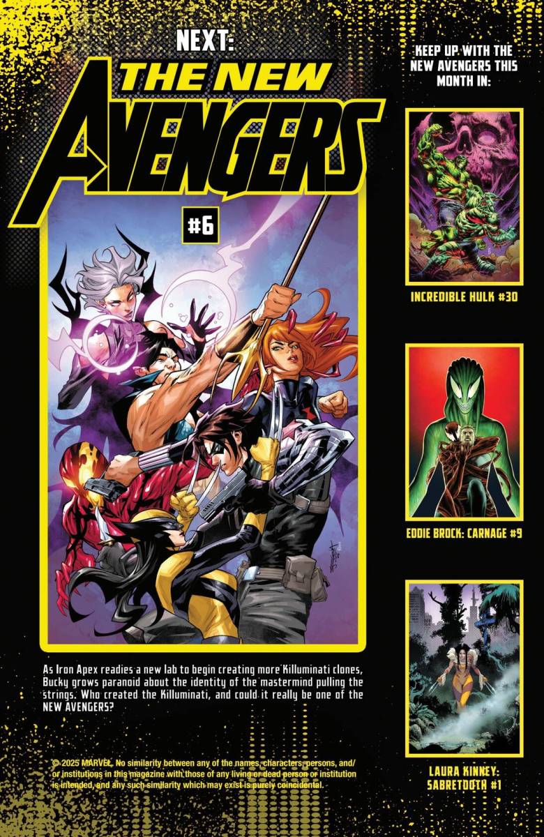 New Avengers #5 (2025) : IMPERIUS REX! Namor’s corrupted double, Imperius Rex, is mutating at an alarming speed, and its newest iteration is out of control and on a rampage! With a city under siege, the New Avengers must rally to stop the monstrous clone before it decimates everything in its path…