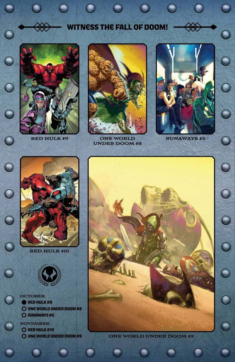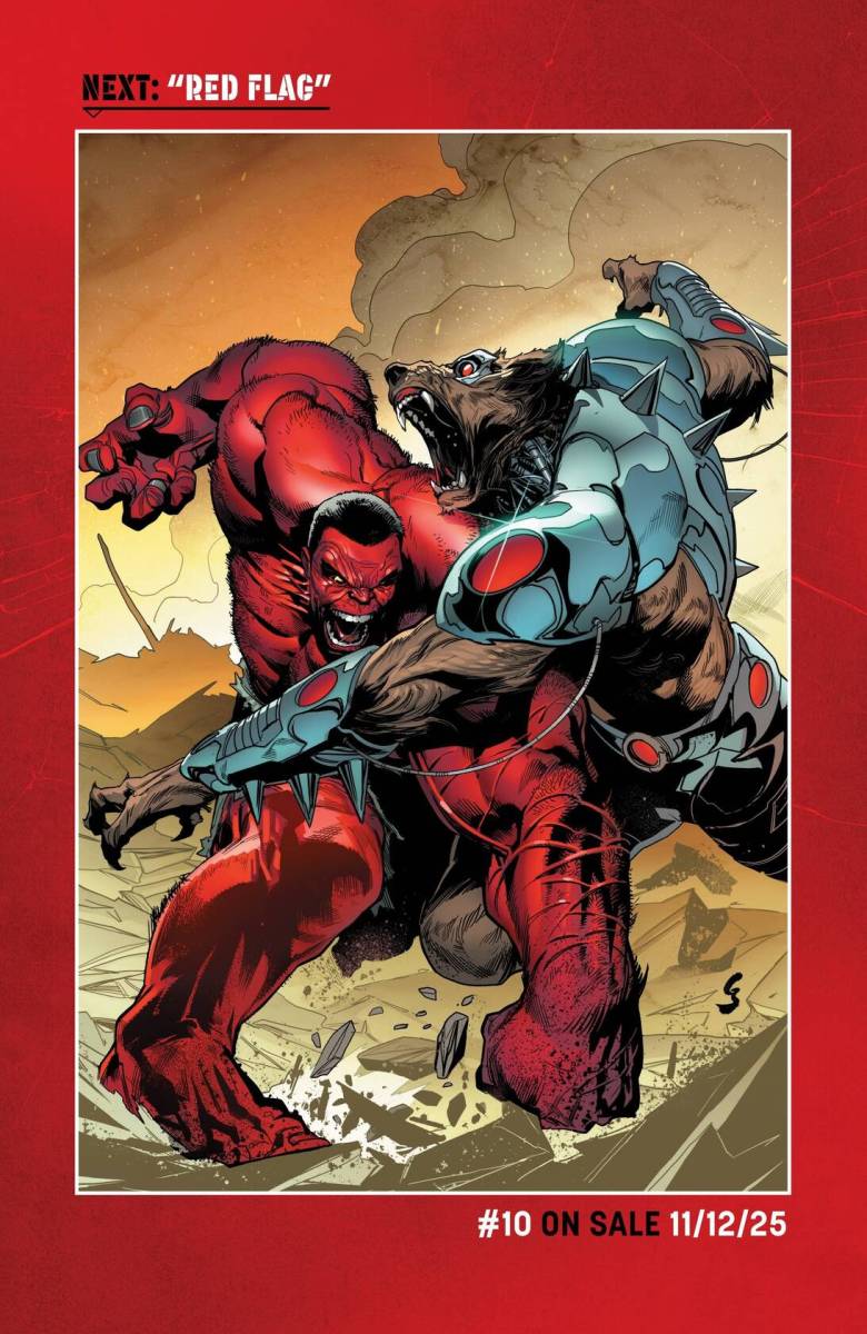 Red Hulk #9 (2025) : Mission: Latveria! Thunderbolt Ross is a fugitive in his own country, but he still has secret allies inside the government. When he calls in a favor, he gets the help he needs to launch a mission to Latveria to clear his name and take on War-Wolf and Doom.