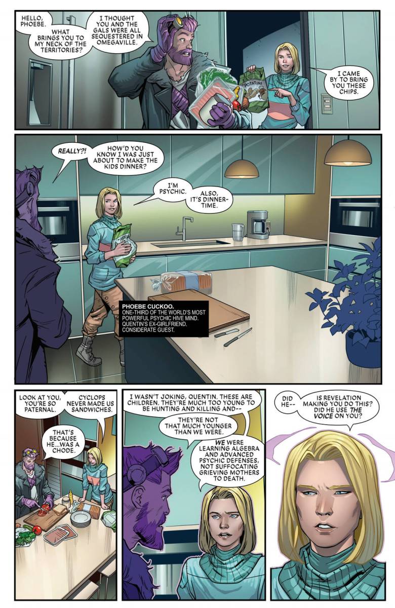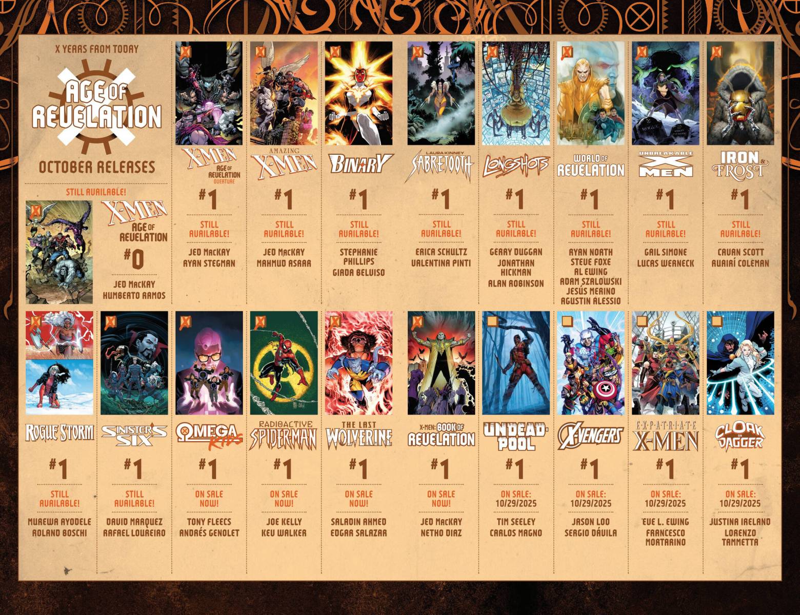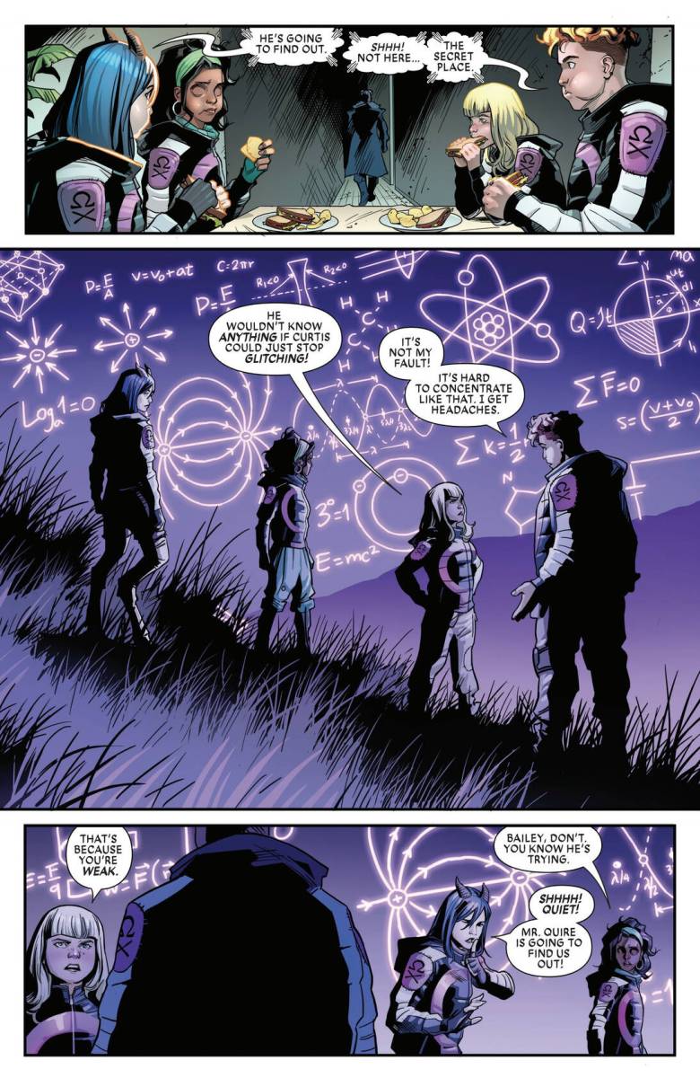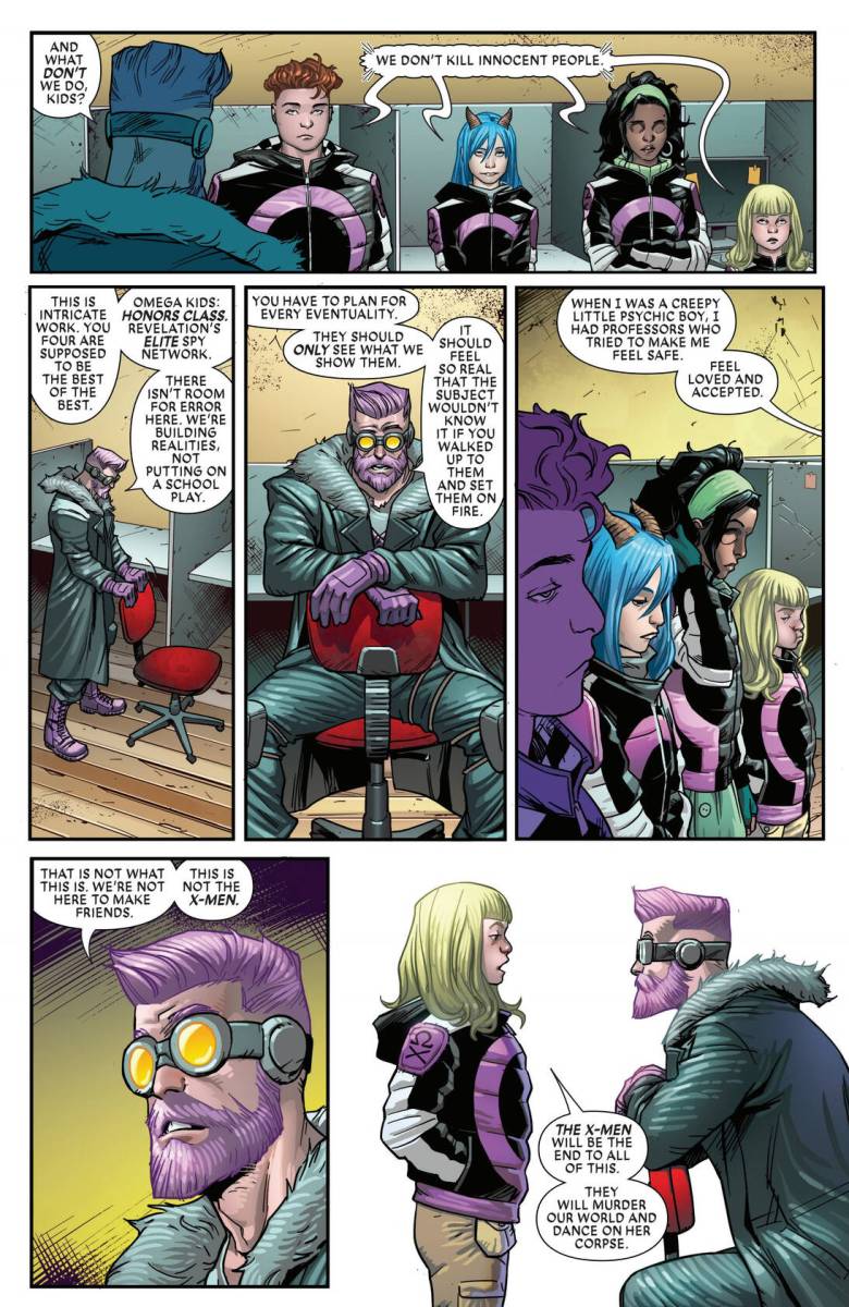 Omega Kids #1 (2025) : KID OMEGA’S ALL GROWN UP! X YEARS LATER, Quentin Quire protects the dream of mutant supremacy and independence as head of the Revelation Territories’ spy network. But when a conspiracy threatens the mutant utopia, Quire and his psychic students will have to distinguish friend from foe. Has Quentin got what it takes to carry the dream forward, or will the next generation replace the former revolutionary?