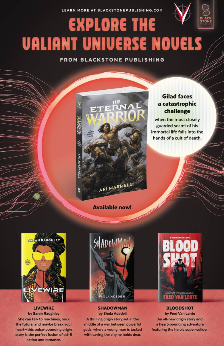 Valiant Beyond – The X-O Manowar #2 (2025) : For two thousand years, Aric of Dacia was at war in the stars. Now, with lifetimes of battle under his belt, Aric is back on Earth and hunting to reclaim the one prize that’s long eluded him… his honor! The Earth Aric finds is an untamed, mutated wasteland pocked with shining utopias that rise above the nuclear frontier. Danger waits beyond every rock and horizon, it’s the perfect spot for Aric to prove himself to be the inspiration for his quest… the ethereal being resting within Aric’s stellar armor. It’s this woman who’s traveled with Aric for millennia, and it’s this woman who’s challenged him to rediscover his honor. This is X-O Manowar as the mysterious stranger in a strange land — even if the world he walks is his homeland. He’s the cosmic knight-errant, the righteous Visigoth answering to no master but honor itself. And all who’d terrorize the innocent, well… they answer to him.
