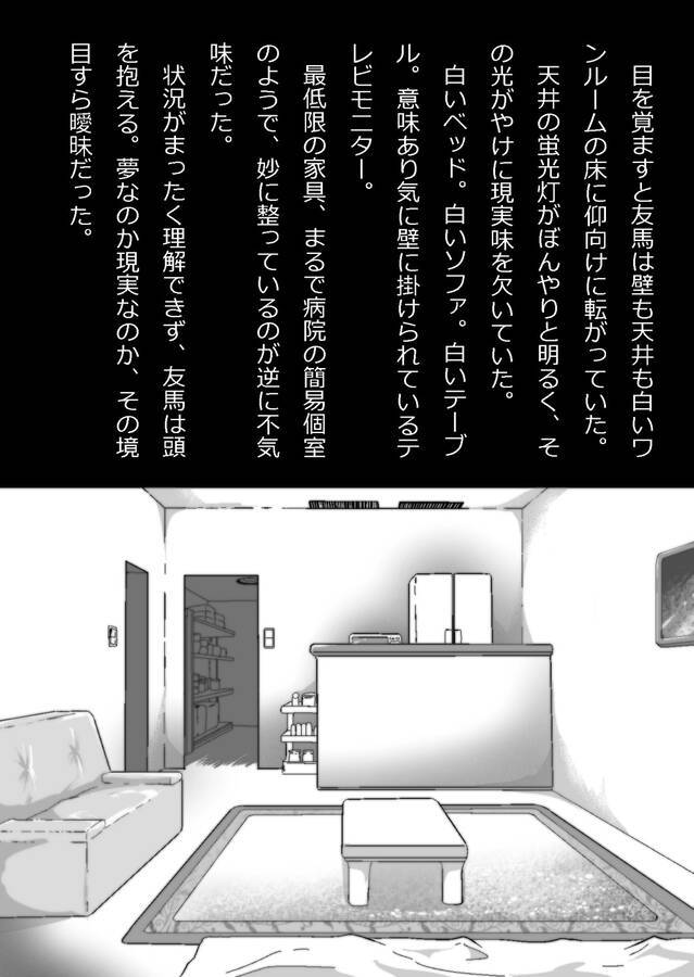 Title / タイトル: ある部屋に閉じ込められた俺と幼馴染と中年教師⦅俺だけ壁越しの配置で⦆